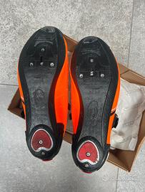 Scarpe SIDI per bici da corsa, taglia 43 in colore arancione fluo. Scarpe perfette, senza segni di usura. Meccanismo di chiusura con cricchetto regolabile e doppio velcro.