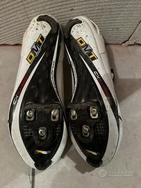Vendo scarpe per bici da corsa marca DMT tg 44 1/2 i buono stato, normali segni di utilizzo. Tacchette per pedali marca LOOK.