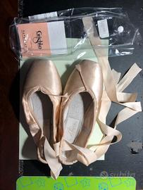Vendesi scarpe per danza classica (punte) in buone condizioni, come si evince dalle foto. Marca Grishko modello Alice numero 5 1/2, complete della sua confezione originale.