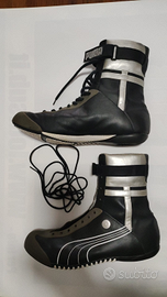 Serie limitata di scarpe F1 PUMA disegnate dallo stilista giapponese MIHARA YASUHIRO taglia 43 usate poco e poi conservate in armadio, le foto sono attuali in pelle, parte argentata integra non consumata come si vede dai bordi. Lacci da sostituire con il colore voluto.