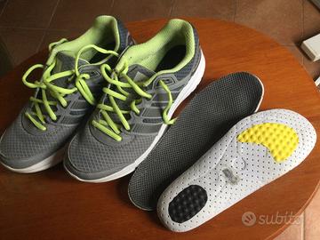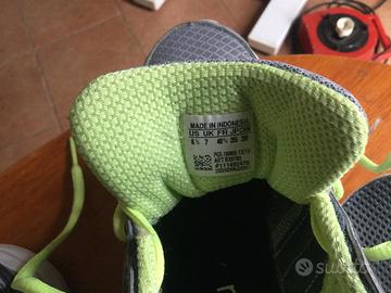 Scarpe rinning Adidas duramo 6 w, n. 40 3/4, 25,5 cm, colore grigio con inserti e lacci giallo fluo. Usate solo un paio di volte (vedi foto suole e solette originali in ottimo stato)