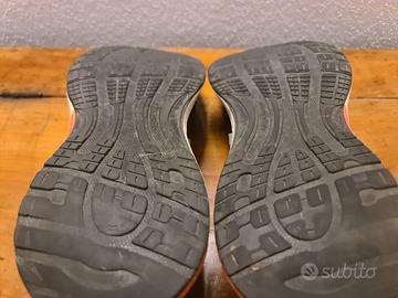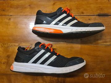 Vendo scarpe Adidas da running, colore nero con dettagli bianchi e arancioni, numero 44.