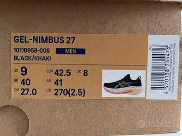 Scarpe ASICS NIMBUS 27, numero 42,5 (27,00 cm). percorrenza 100 km. Vendo per numero errato.