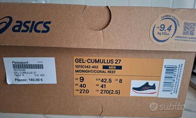 Utilizzate solo per 2 uscite vendo scarpe running Asics modello Gel-Cumulus n.42.5 vedi foto in allegato