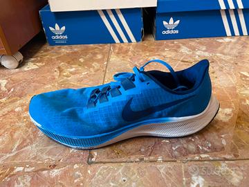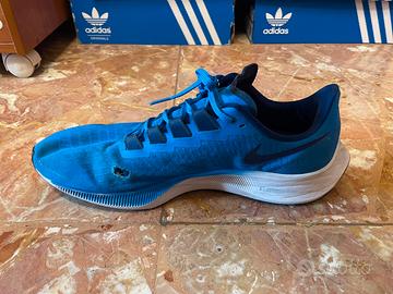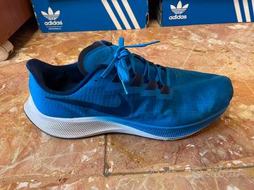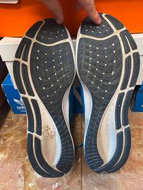 Scarpe running usate, ma con la suola ancora in ottime condizioni. Unico difetto un buco riparato nella parte interne. Sono state dismesse per quel motivo. Al momento hanno 200 km percorsi.