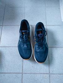 Scarpe da corsa, misura 11 US, percorsi 500 km per singolo paio. Brooks Adrenaline (bianche) e Asics GT 4000 (blu). 40 euro al paio, 60 euro due paia.