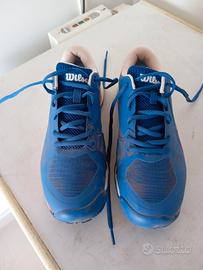 Wilson Rush Pro Ace taglia 42 e 2/3. Usate solo tre ore in quanto per me erano troppo aderenti. In condizioni perfette.