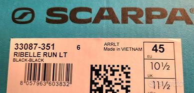 Vendo scarpe da trail running o trekking / hiking marca Scarpa modello Ribelle Run LT color nere. Numero 45. Mai usate, provate in casa e mai utilizzate.