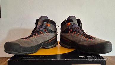 Belle e comode scarpe da avvicinamento La Sportiva n.43. Condizioni molto buone. Usate pochissimo. Si potrà notare una lieve usura della suola Vibram. Irrilevante. La Sportiva TX4 Evo Mid Gtx scarpe da avvicinamento da uomo stabili e dal grip ottimale su ogni terreno, con speciale membrana impermeabile in GORE-TEX, estremamente confortevoli, permettono di avere sempre la massima stabilità in fase di discesa e un perfetto controllo della trazione in salita, precise e aderenti, con possibilità di risuolare la scarpa all'occorrenza.