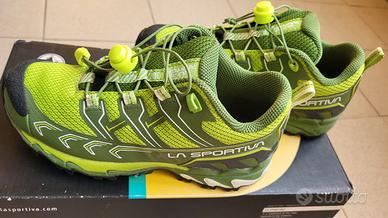 La Sportiva Ultra Raptor 2 Jr Low, colore verde lime taglia 34, bellissime, dalla linea aggressiva e performante, provate un paio di volte, ma troppo piccole x mia moglie