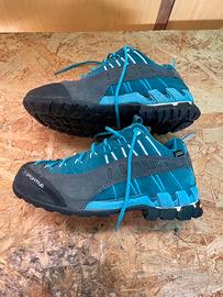Per inutilizzo , vendo scarpe trekking N. 38 Woman GTx in GORE-TEX marca LASportiva per avvicinamento. Indicata per un piede a pianta stretta /snello. La scarpa e stata usata veramente pochissimo per cui è ancora in ottimo stato.