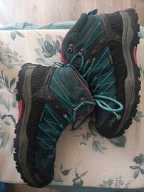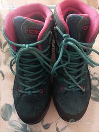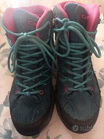 vendo scarponi trekking, scamosciato petrolio, misura 40, marca CMP, waterproof, comprato 2 anni fa, usati pochissimo, pagato 75€ , vendo a 39 €