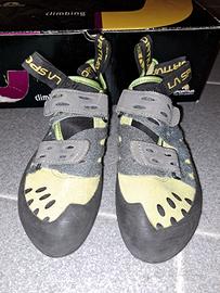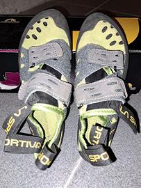 Vendo usate pochissimo ed in ottime condizioni scarpette arrampicata La Sportiva Tarantula velcro 36.5 causa taglia errata.