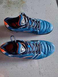 vendo scarpette da calcetto di colore azzurro nr.41 marca joma indossate una sola volta e parastinchi marca kipsta