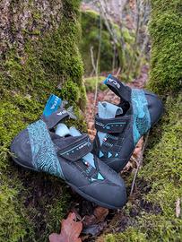 Scarpette da arrampicata Instinct VS da donna Personalizzate a mano e trattate con spry waterproof per mantenerle nel tempo. Risuolatura originale, uste pochissimo Taglia 36,5