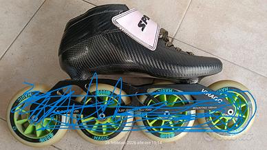 Vendo per inutilizzo scarpette da pattinaggio a rotelle SPSPSK, full carbon termoformabile, lunghezza interna 27,6 cm (taglia 43 europea). SOLO SCARPETTE (no telaio, no ruote)