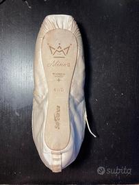 Scarpe da punta nuove, mai usate causa numero errato, in gesso di SoDanca modello Alina2 taglia 6,1/2(38/39). Lunga durata con suole intercambiabili di durezze diverse, sacchetto con punte antiscivolo, lacci per le punte e salvadita di diverse lunghezze e dimensioni come da foto.