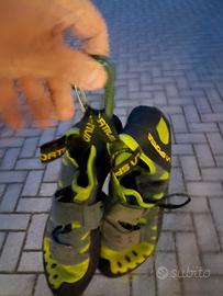 Vendo: -moschettoni e rinvii vari praticamente nuovi come da immagine 50 euro. -scarpette 25 euro -intero blocco 65 euro