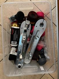 Stivaletti n. 44/45 e piastre nuove con varie ruote da strada e ricambi freni con viti. Regalo. Ritiro a mano.