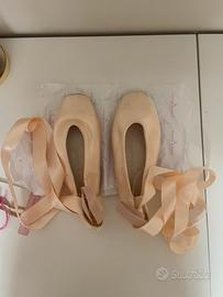 Scarpette punte gaynor cucite con elastico e nastro, mai utilizzate a causa del numero sbagliato comprato da mia madre.