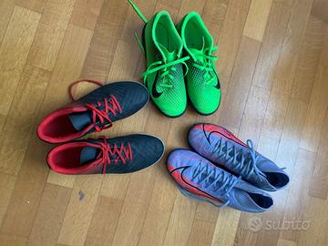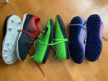 Vendo anche separatamente n.3 paia di scarpini da calcetto: marca Nike Mercurial celesti N.40 € 30 marca Nike verdi N.37.5 € 25 marca Kipsta rosse e nere N.38 € 10 Tutte e tre a 50 euro