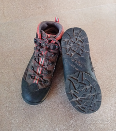 Vendo scarpe da trekking (scarponi, pedule) di colore marrone con dettagli arancione, tomaia in pelle scamosciata e tessuto idrorepellente, punta rinforzata, suola in gomma, marca Dolomite modello Flash Evo, n. 36, per bambino o adulto, indossati un paio di volte, come nuovi, in ottime condizioni.