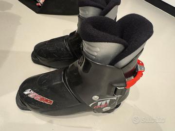Scarponcino Tecnica nero usato e con evidenti segni di usura, taglia MP 19,5, ideale bambino/a 5-7 anni.