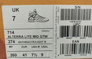 La suola è realizzata con una mescola particolare di AKU, detta Alterra Lite, garantisce un aderenza ottima su tutti i terreni.