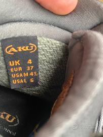 Scsrponcini scarpe da trekking, marca AKU, misura 37, impermeabili, membrana in GoreTex, suola Vibram, in ottimo stato come da foto.