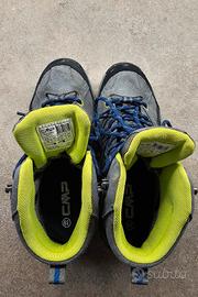 sa cambio numero, vendo pedule da trekking usati una sola volta da mio figlio per una breve passeggiata. Come da foto, gli scarponi sono praticamente come nuovi. Marca Campagnolo, modello 3Q12944 Kids Rigel mid trekking, numero 38 (mm 245), prezzo pieno 65 euro. Sono in pelle scamosciata grigio tortora, con tocchi di colore lime, blu e nero a contrasto. Sono waterproof e hanno la membrana CLIMA PROTECT con laminato termico che garantisce impermeabilità e traspirabilità.