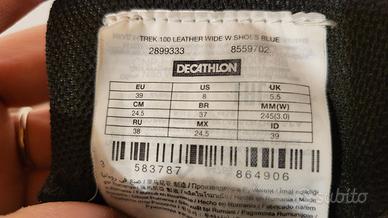 Vendo scarponcini da trekking da donna Decathlon – Forclaz Trek 100 Leather Wide, colore blu/grigio, in buone condizioni.