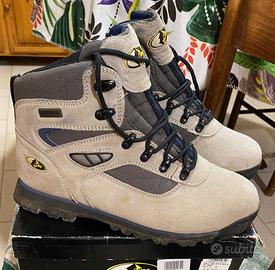 Scarponcino uomo/donna Ande, con tomaia in Nubuck, colore avana, con inserti in Nylon e suola Vibram. Ottima impermeabilità, resistenza allo sporco, facilità di pulizia e protezione dagli urti. Misura 40. Come nuovo.