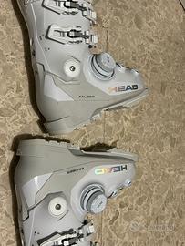 Scarponi da sci HEAD KALIBER 95. Scarponi praticamente nuovi, messi due volte. Vendo per misura sbagliata. Indice di durezza 95 portabile a 105. Misura dello scarpone 240/245 mm equivalente ad un 38/39. Aggancio della pianta con tecnologia BOA super comoda, mentre agganci dello stinco classici. Hanno anche il grip walk sotto per riuscire a camminare meglio. Vendo con diversi accessori compresi all'acquisto degli scarponi. Senza scatola. Per altre foto e info, contattami.