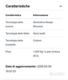 Quello che li distingue davvero è la costruzione: lo scafo è realizzato con un processo di design generativo che riduce il peso mantenendo rigidità e trasmissione della potenza. Il gambetto asimmetrico in tecnologia Dual Core usa materiali diversi nelle zone giuste — più morbido dove serve flessibilità, più rigido dove serve supporto. Il risultato si sente guidando.