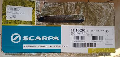 Vendo scarpone da Trekking "Scarpa Zodiac Plus GTX" numero 43. Goretex e Vibram. Ottima risposta a sollecitazione su roccia, perfettamente impermeabili alla neve. Molto comode e traspiranti. In buono stato con scatola originale.