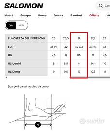 Misura scarpone 27, come da tabella ultima foto corrisponde ad un 42 2/3. Disponibile consegna a mano zona Modena o Bologna.