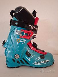 Modello SCARPA F1 EVO donna misura scafo 25 (taglia 39) usato poco e ben tenuto. Suola in ottime condizioni come tutto lo scarpone. Vendo per passaggio ad altro modello.