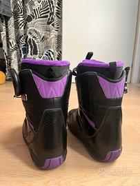Vendo scarponi da snowboard Salomon Pearl nero e viola.