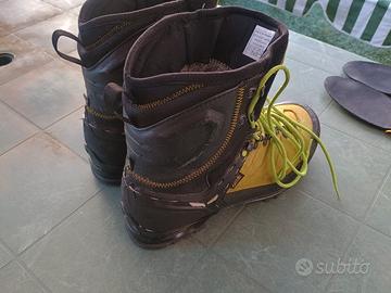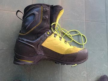 Vendo causa inutilizzo Scarponi Salewa Vulture Gtx Sono stati usati per una decina di uscite prevalentemente in alta quota su terreno misto. taglia 44. L'impermeabilizzazione é ancora buona dato che li ho sempre puliti e trattati dopo ogni uscita. Sono semi-ramponabili Vendo per inutilizzo. Aggiungo descrizione del prodotto del produttore anche se li trovate ancora in vendita su alcuni siti che riportano maggiori dettagli sul prodotto. In caso di spedizione possiamo accordarci. Altrimenti posso consegnare in provincia di Varese-Como-Milano Descrizione del prodotto La fodera GORE-TEX® Performance Comfort, traspirante e impermeabile nel tempo, garantisce isolamento e controllo della temperatura in diverse condizioni atmosferiche. L'inserto rigido in fibra di vetro miscelata al carbonio garantisce la compatibilità con i ramponi ibridi ed è ideale per l'arrampicata alpina, i percorsi misti e le traversate dei ghiacciai. Grazie all'estremità flessibile del gambale e all'intersuola ergonomica a due livelli, sentirai comfort durante la camminata, una migliore ammortizzazione e una maggiore durata rispetto ai modelli convenzionali. Sotto il piede, la stabile suola Vibram® WTC garantisce un'ottima presa grazie al suo profilo dinamico, mentre la zona di arrampicata nella zona delle dita consente un gioco di gambe preciso. Il nostro sistema brevettato SALEWA® 3F collega la zona del collo del piede con la suola e il tallone, garantendo così flessibilità, tenuta forte e una calzata sicura. Grazie al sistema di allacciatura 3D, puoi adattare con precisione l'avampiede e il mesopiede al piede per un maggiore comfort e precisione. La fodera multistrato MFF+ con due strati intercambiabili consente di personalizzare la calzata (o di indossare calzini più spessi). Il collare elastico consente una maggiore mobilità nella parte posteriore della caviglia e comfort in discesa.