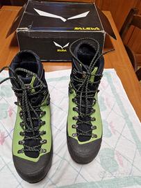 Vendo scarponi da alpinismo della Salewa in Goretex mod. Ortles Ascent Mid Gtx NUOVI; li ho usati per mezz'ora ma sono piccoli per me. Suole aggiuntive gialle non sono mai state utilizzate negli scarponi. La descrizione è questa : Suola Vibram® Alpine Guide ; Fodera in GoreTex Insulated Comfort Soletta anatomica MFF+ Intersuola in poliuretano espanso ; Ramponabile ; il prezzo di listino è superiore ai 300€ ma loi cedo a 190 € con consegna compresa a Vicenza-Padova-Verona-Brescia-Bergamo (così li potete provare)
