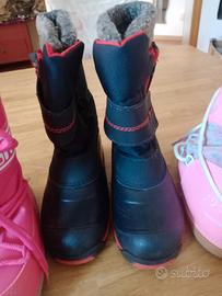 scarponi da neve, fucsia n 32/34,rosa n 32/34,neri 33/34. Vendo a 7 euro al paio