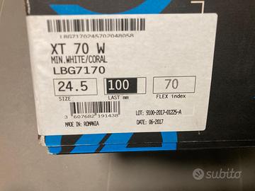 Scarponi da sci All Mountain LANGE XT 70 W, taglia 24,5 (numero di scarpa 38,5/39). Adatti per sciatrici dal livello principiante a intermedio che ricercano principalmente uno scarpone con un buon comfort di calzata e un buon isolamento termico. Come nuovi, usati forse 3 volte.