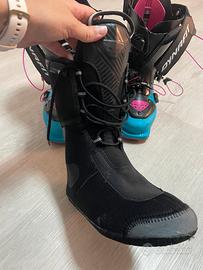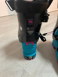 Vendo per passaggio ad altro tipo scarponi da sci alpinismo taglia 24.5, con tre ganci regolabili e bloccaggio perla discesa. Scarpetta estraibile e chiusa con lacci come da foto. Come nuovi, utilizzati 15 volte.