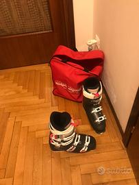 I Rossignol Kiara 60 sono degli scarponi da sci da donna davvero confortevoli per l'all mountain. Hanno un flex di 60 e sono ideali per gli sciatori alle prime armi o di livello intermedio dal peso nella media. Il last è piuttosto largo (104 mm) e la robusta talloniera vi assicura un'ottima trasmissione di potenza. Usati pochissimo taglia 39.