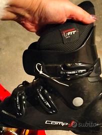 Un paio di scarponi Tecnica color arancione misura 37 e 1/2 e un paio Rossignol color nero misura 36