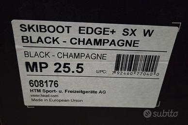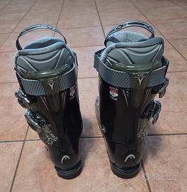 Scarponi Head di colore nero con rifiniture grigie in ottimo stato d'uso. All'interno della scatola libretto Head con chiave e solette di ricambio