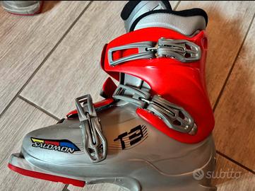 Vendo scarponi da sci salomon numero 36/37 da ragazzo con qualche segno di usura e bastoni alti 90 cm