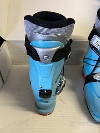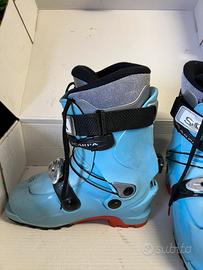 Scarponi Scarpa vintage, ancora funzionanti. Sgancio sul retro per modalità walk. Lacci interni.