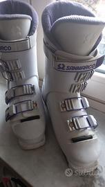 San Marco CX 333, un modello vintage di colore bianco con dettagli viola, destinato principalmente a un pubblico femminile o a giovani sciatori.