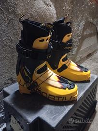 Vendo fantastici scarponi da scialpinismo La Sportiva modello Spitfire taglia 41 (26.5), ultraleggeri con inserti in carbonio. Sono perfetti e non presentano nemmeno un graffio,sono stati usati al massimo per 4-5 uscite non di più, la scarpetta interna non è neache stata termoformata. Vero affare per chi cerca uno scarpone di medio/alto livello in condizioni pari al nuovo.